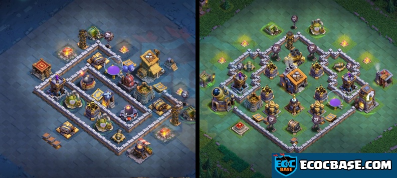 Diseño para el puesto de O.T.T.O y taller del constructor nivel 9, seleccionar un buen diseño te permite a defenderte bien en los ataques para subir copas y obtener mejores recompensas, compartido por RandomUser, enlace compatible con la aldea nocturna 2.0 en la reciente actualización de Mayo del 2023.